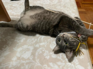 たとえば、猫じゃらしやレーザーポインターで1日10分程度遊ぶと、穏やかな気持ちでふみふみを楽しむようになります。